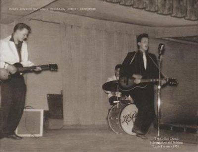 Bob Zimmerman skipped out of town a half-century ago, adopting a stage name and becoming a singer, an icon and a millionaire many times over. Storefronts have changed hands and a lot of his family has passed away or moved, but in many ways Hibbing has barely changed since he left, and the quiet tells the pilgrims what they need to know about why he did. Dylan made a name as a teenager by jumping up in front of crowds and making noise, a lot of noise, amplified noise. Infernal noise, the respectable crowd said. He hammered on pianos and screamed like Little Richard at volumes his listeners considered uncomfortable. A photograph from 1958 shows him standing on a stage at an Elvis mic, wearing a striped suit, his hair swept into a pompadour, his mouth open, his right foot poised to crash down on the boards to the beat with a resounding crack! At one of these wild-eyed performances, the principal switched off the microphones and yanked the curtains shut. Years later, the man was still shaking his head. “He got so crazy!”